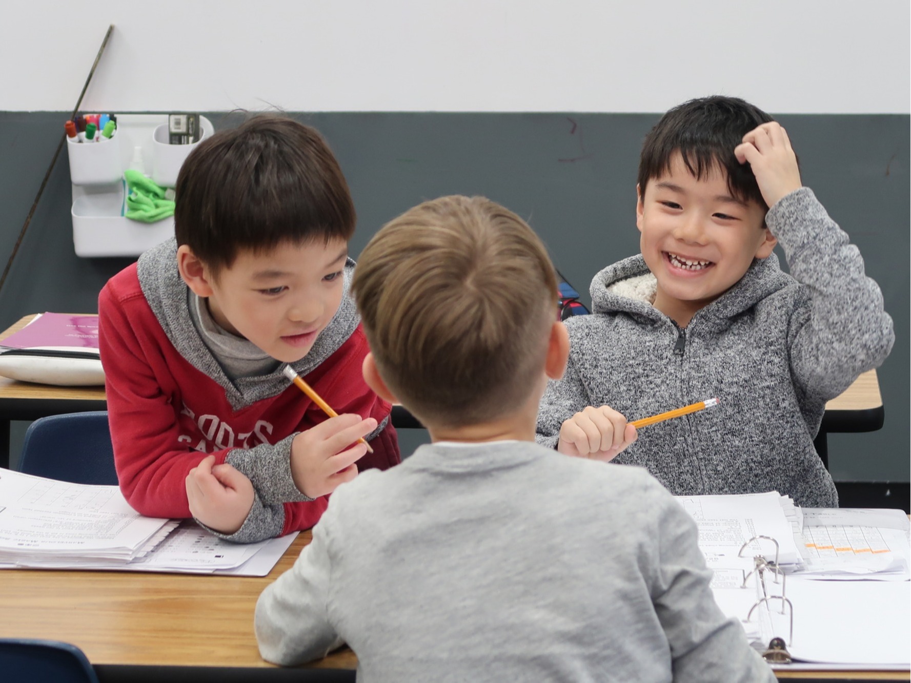 The one-hour and 15-minute classes are fast-paced with many different activities for the kindergarten child. Students develop their 2-D and 3-D spatial sense with activities at the beginning of each class, followed by developing an understanding of how numbers work together in patterns. A hands-on practical approach to numeracy and geometry, combined with some memory work, provides for the foundation to problem solving. The problem solving is focused on language, patterning and reasoning to form the foundation to the logical thinking needed for later grades.